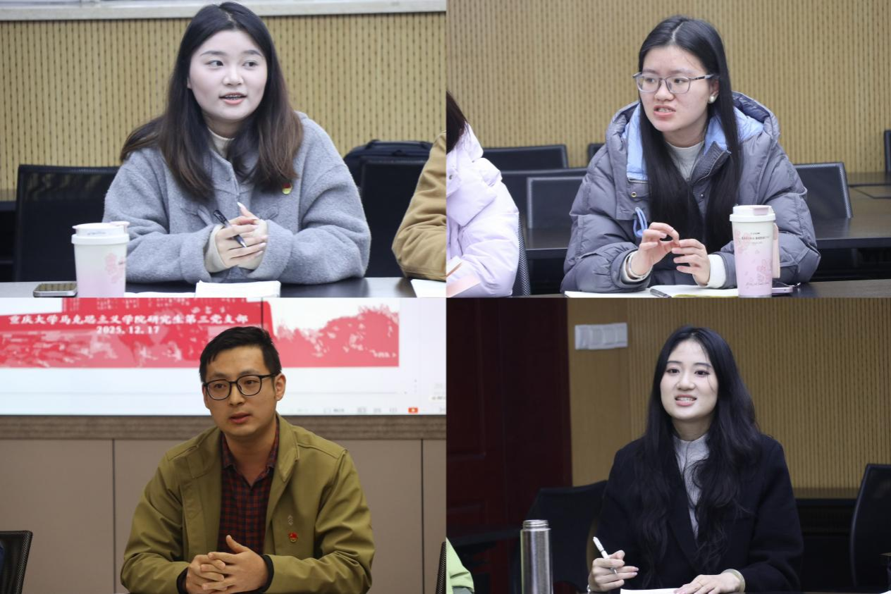 2025年12月17日,马克思主义学院研究生第三党支部在学院408室开展了“学习习近平法治思想,强化青年使命担当”主题党日活动。校党委书记王树新同志、院党委书记谢昭明同志及支部全体党员参加了本次活动。