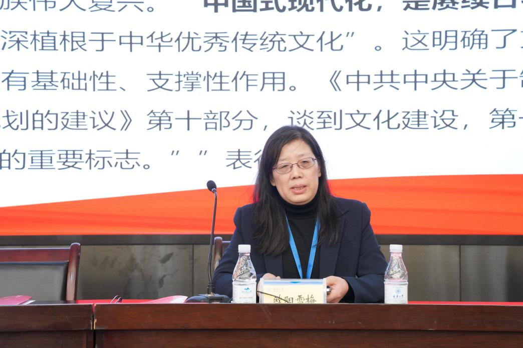 欧阳雪梅以《中华文化主体性与中国式现代化》为题作主旨报告,深刻阐明二者内在关联。报告指出,中国式现代化并非凭空而生,而是深深根植于中华优秀传统文化。高扬中华文化主体性,需以中华文化为根脉、吸纳多元文化资源,培育良好文化生态、提升文化原创力,坚守传承立场并增强对外吸引力,为中国式现代化筑牢坚实文化根基。